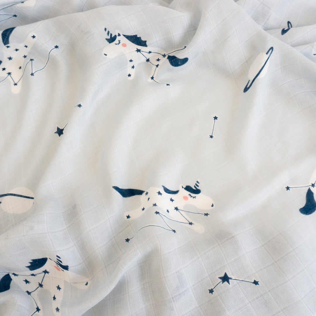 Ultra Soft Bamboo Muslin Swaddle Blanket 120X120CM Unicorn Blue