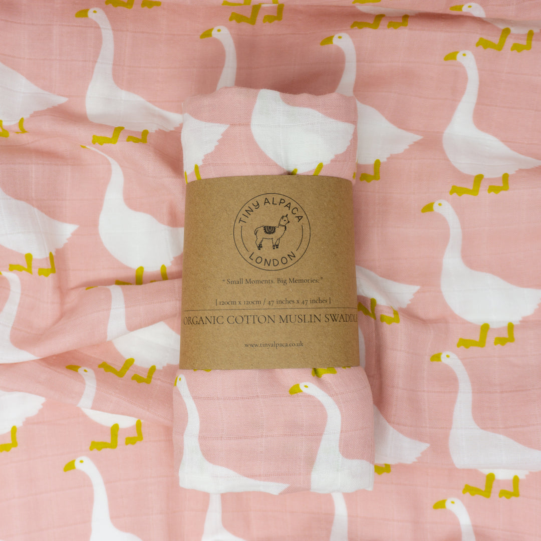 Organic Cotton Swaddle Wrap "Swan" 120X120CM